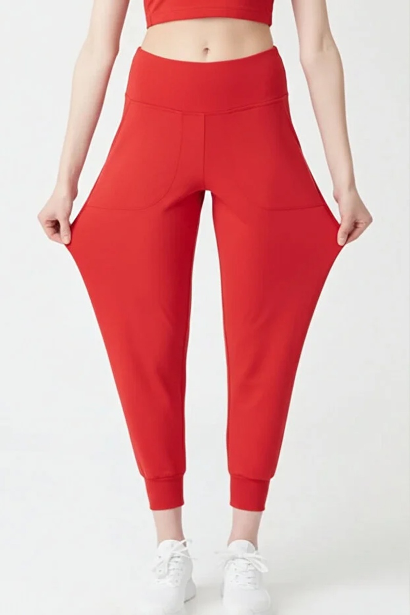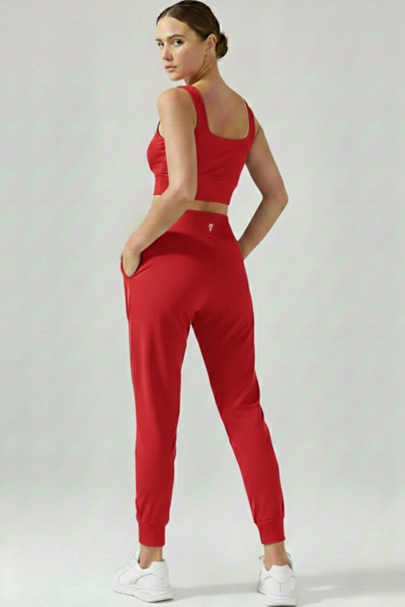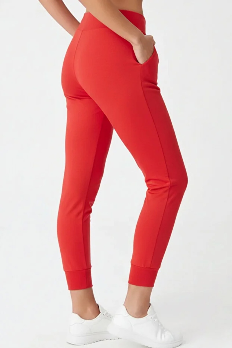 EMFURE Kadın Kırmızı Çift Cepli Yüksek Bel Lastikli Rahat Kesim Jogger Eşofman Altı