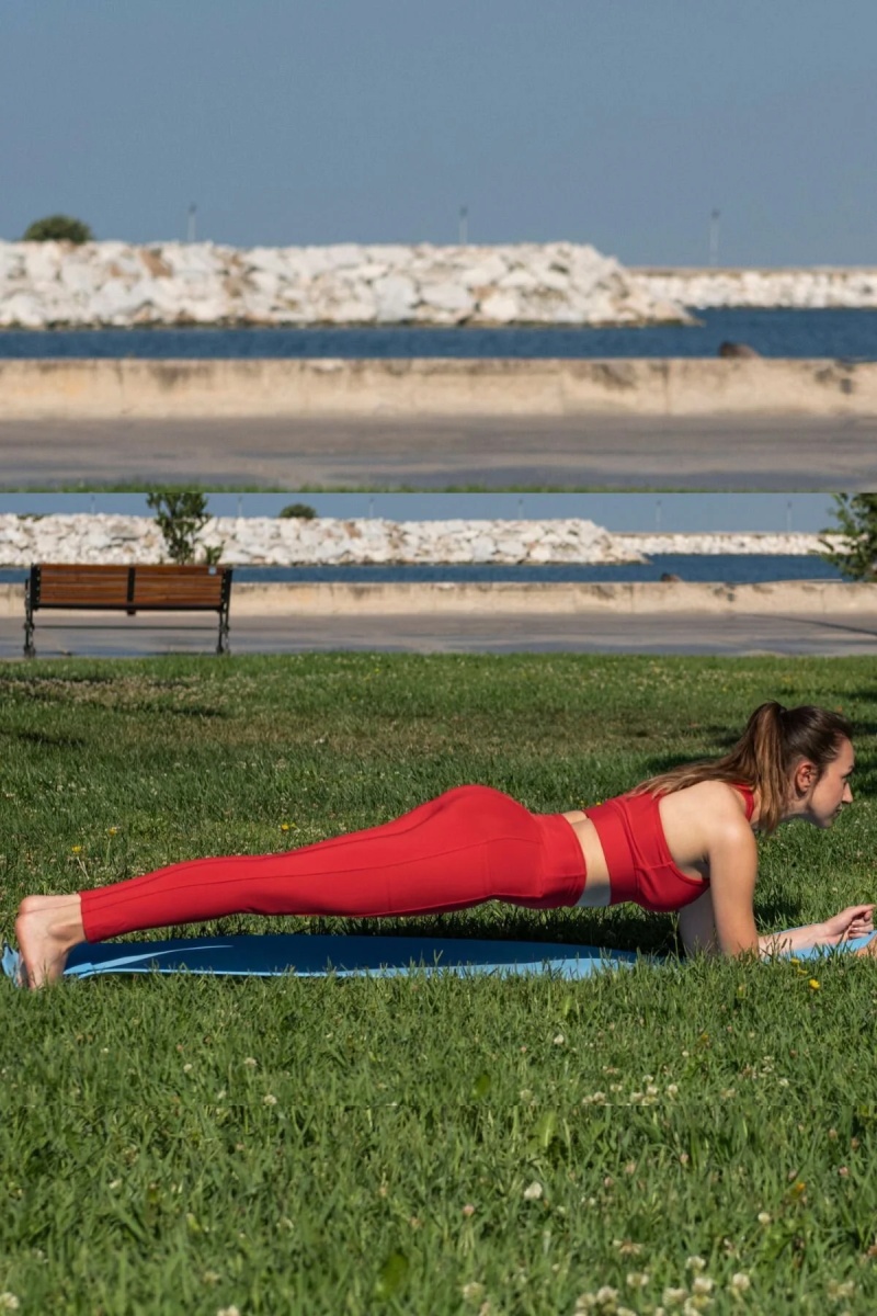 - Canlı kırmızı rengiyle dikkat çeken bu spor tayt ve büstiyer takımı, yoga, fitness ve plates gibi aktivitelerinizde şıklığınızı korumanızı sağlar.