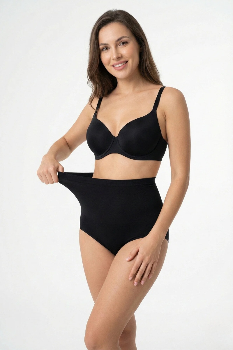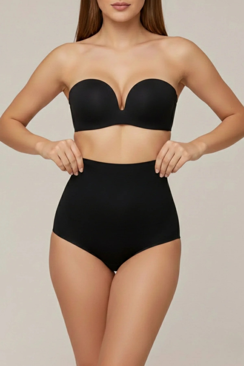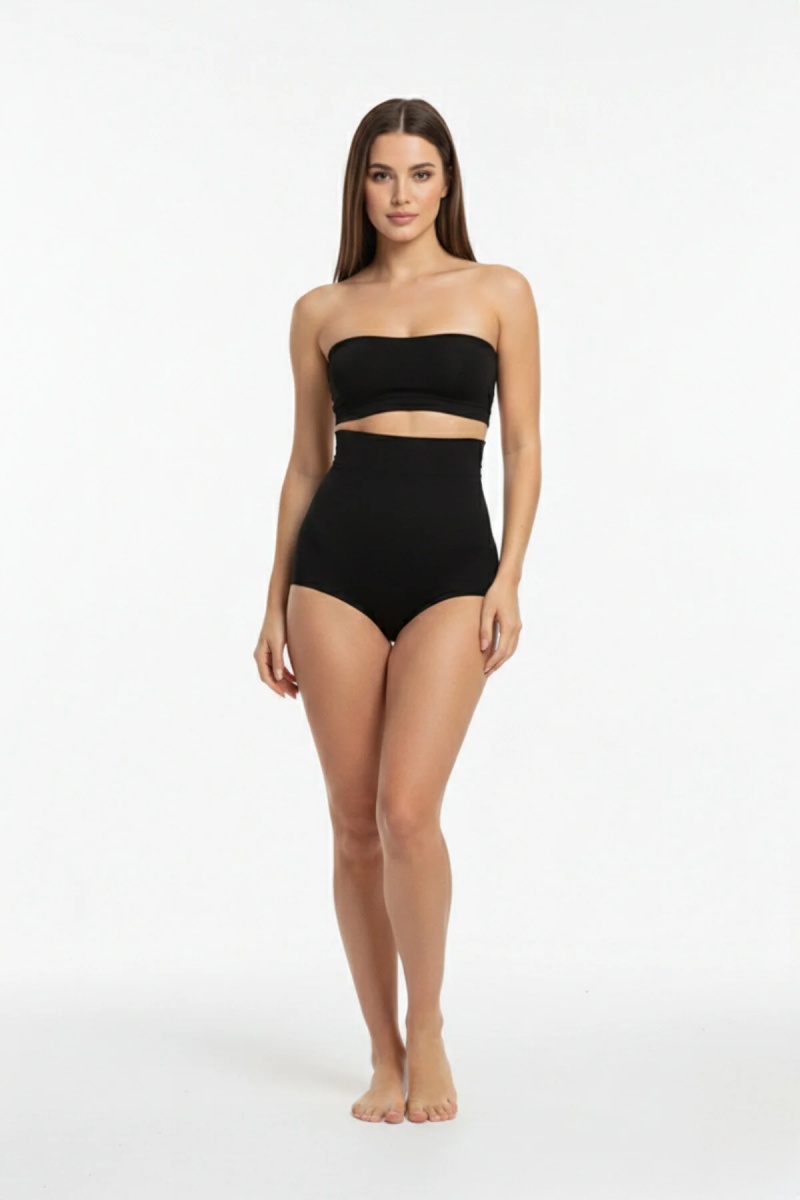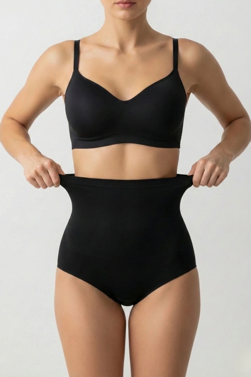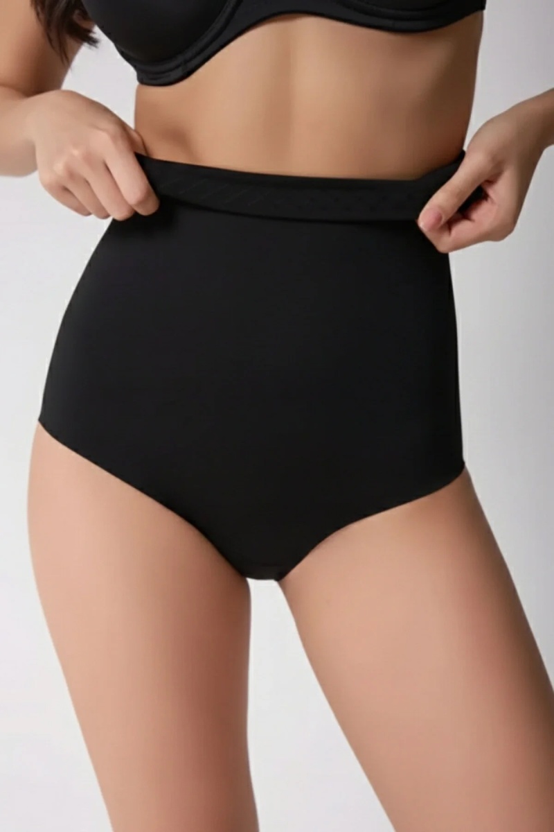 EMFURE Siyah Yüksek Bel Lazer Kesim Slip Külot Görünmez Kaymaz Silikonlu Korse