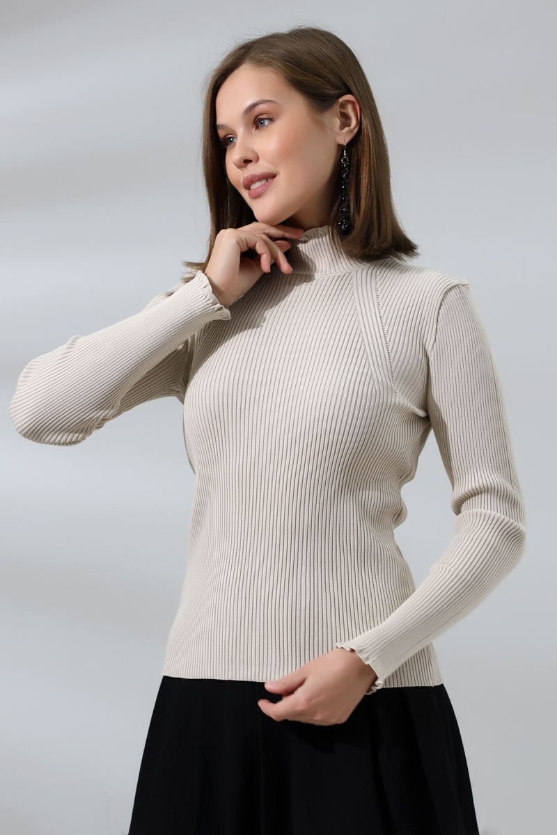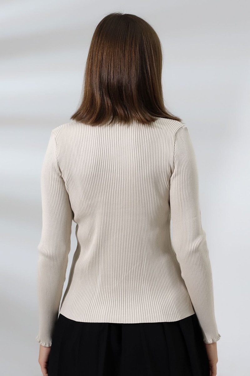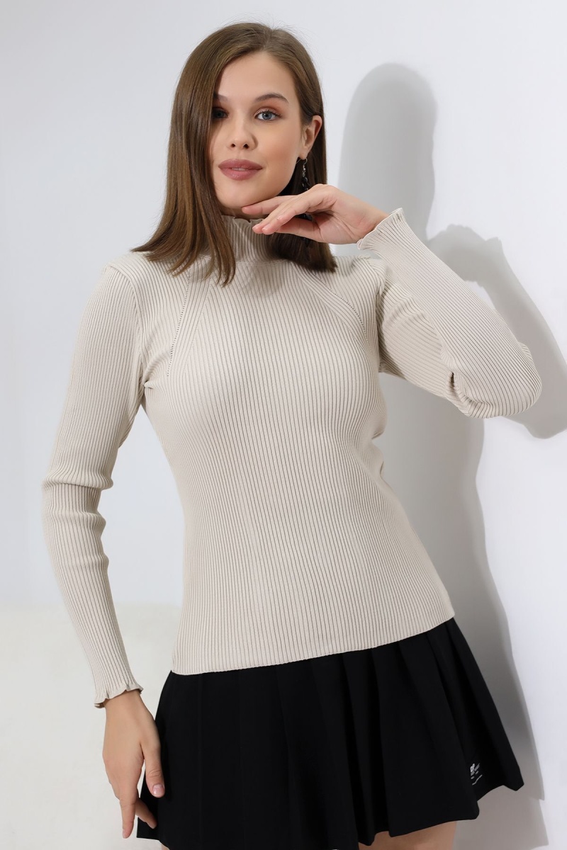 Kadın Ekru Basic Yarım Balıkçı Yaka Triko Kazak
