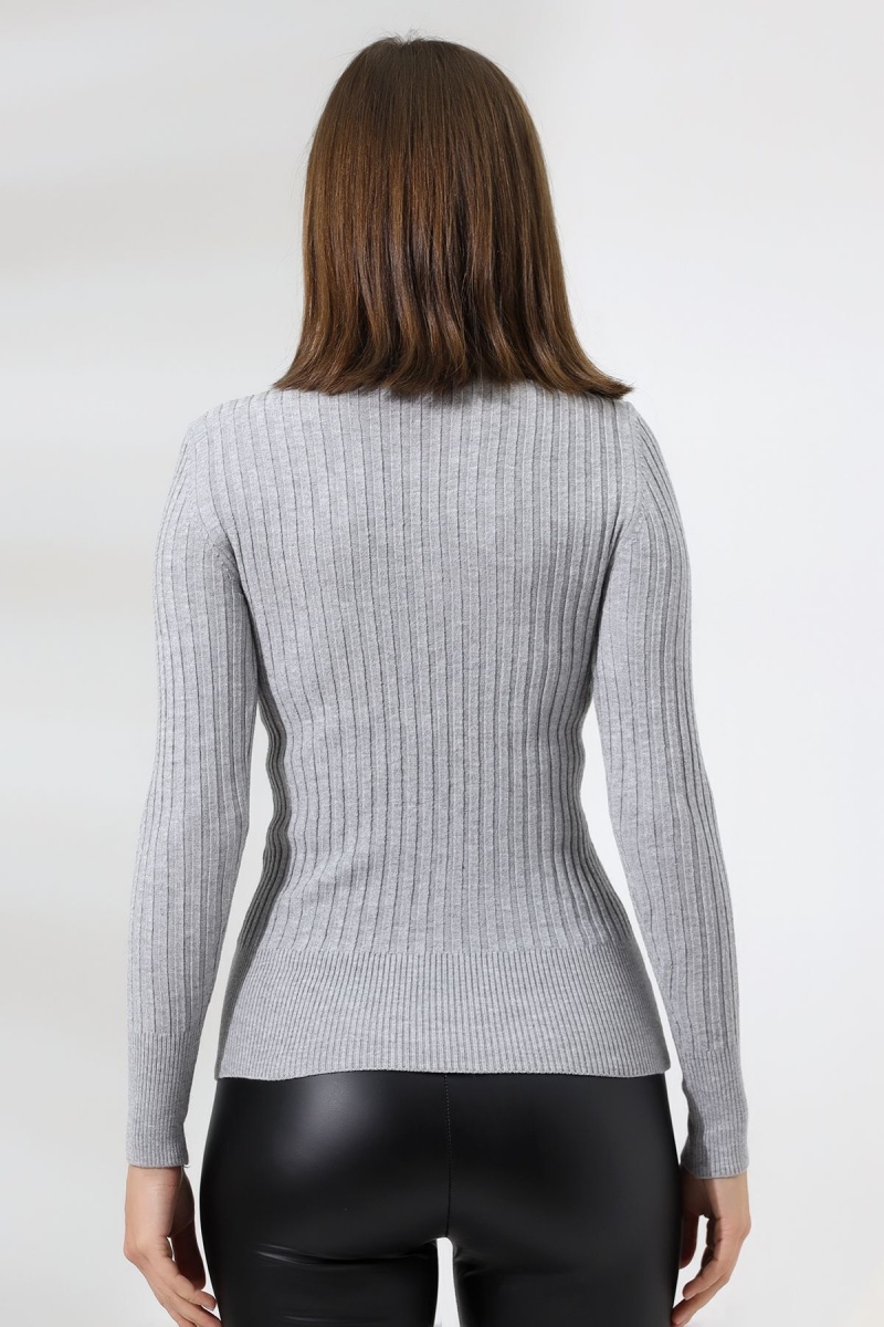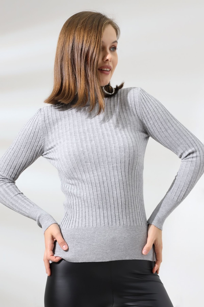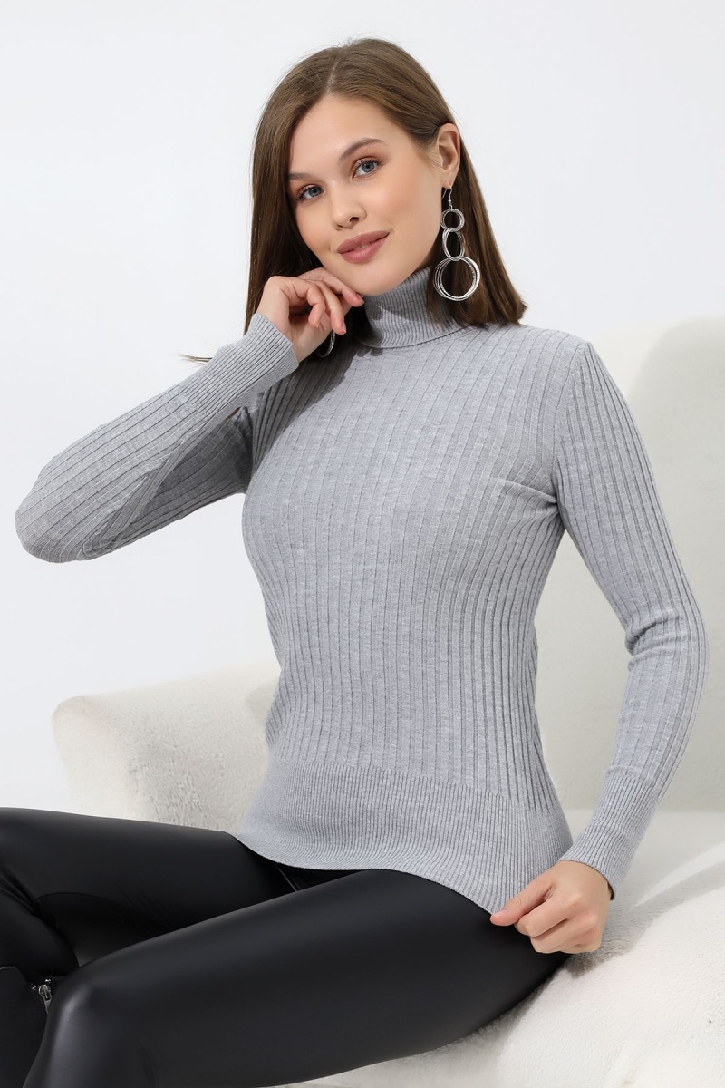 Kadın Gri Basic Balıkçı Yaka Triko Kazak