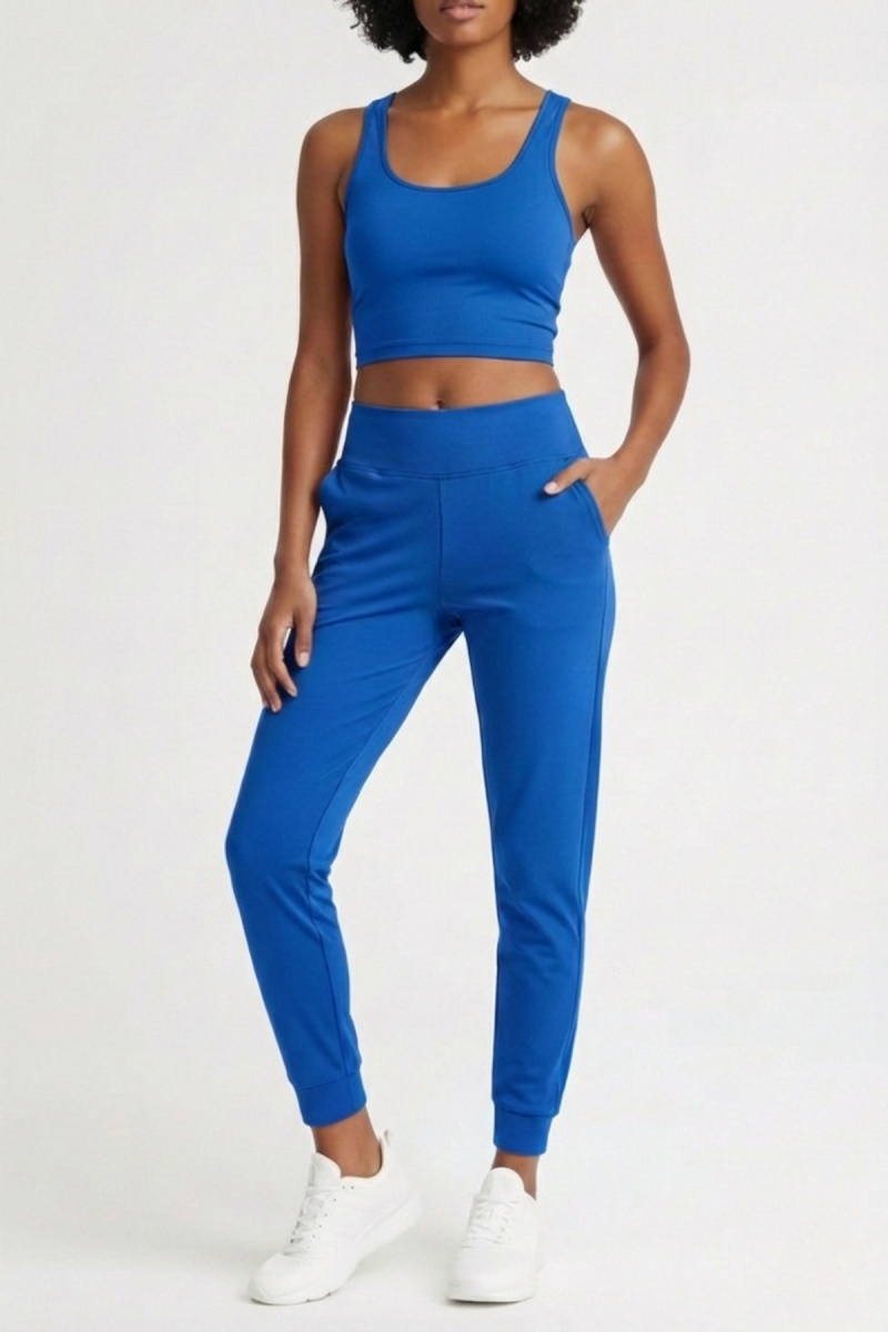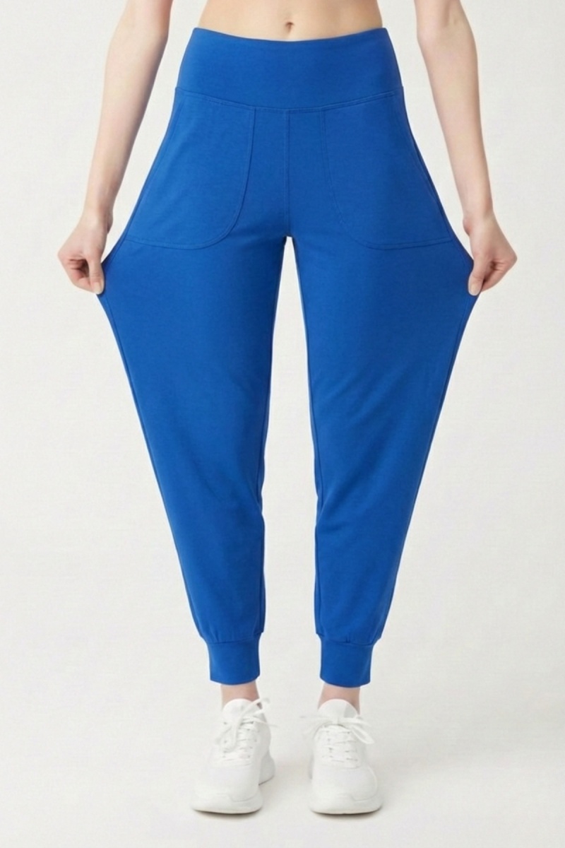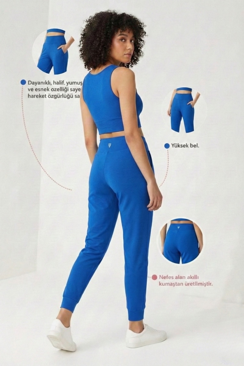 Kadın Saks Çift Cepli Yüksek Bel Lastikli Rahat Kesim Jogger Eşofman Altı