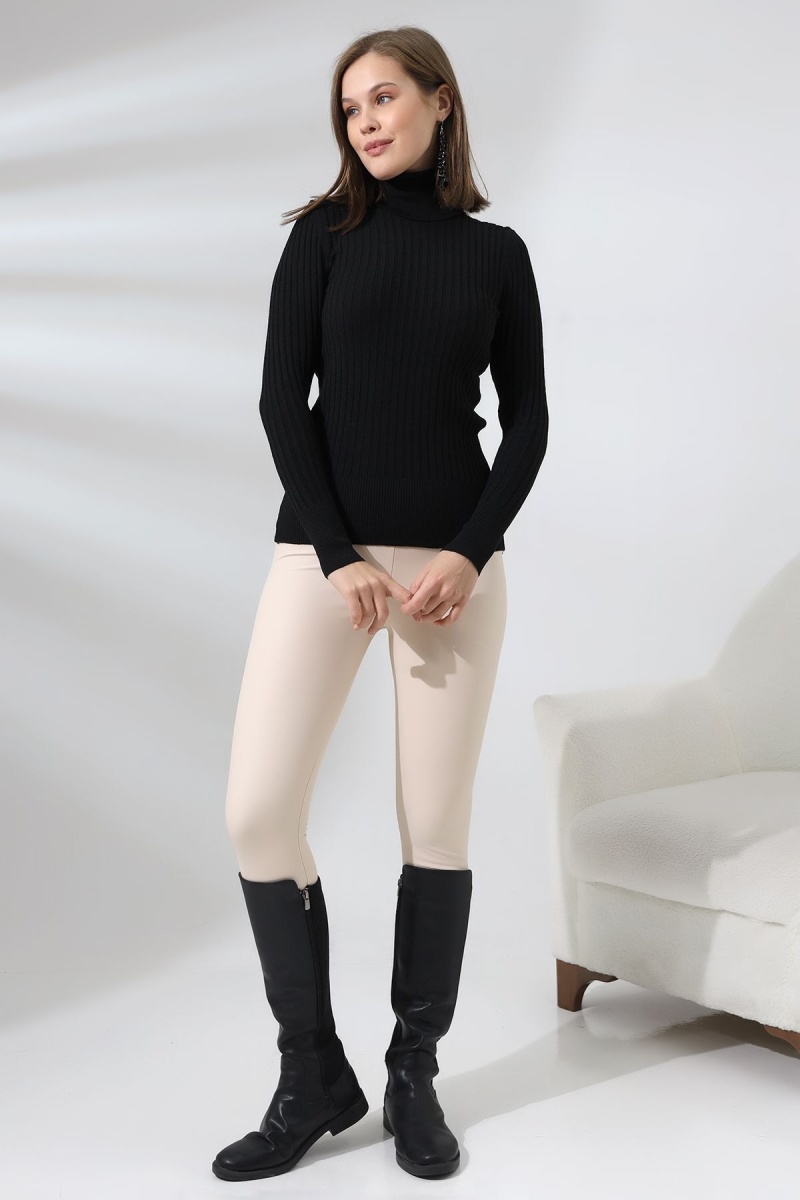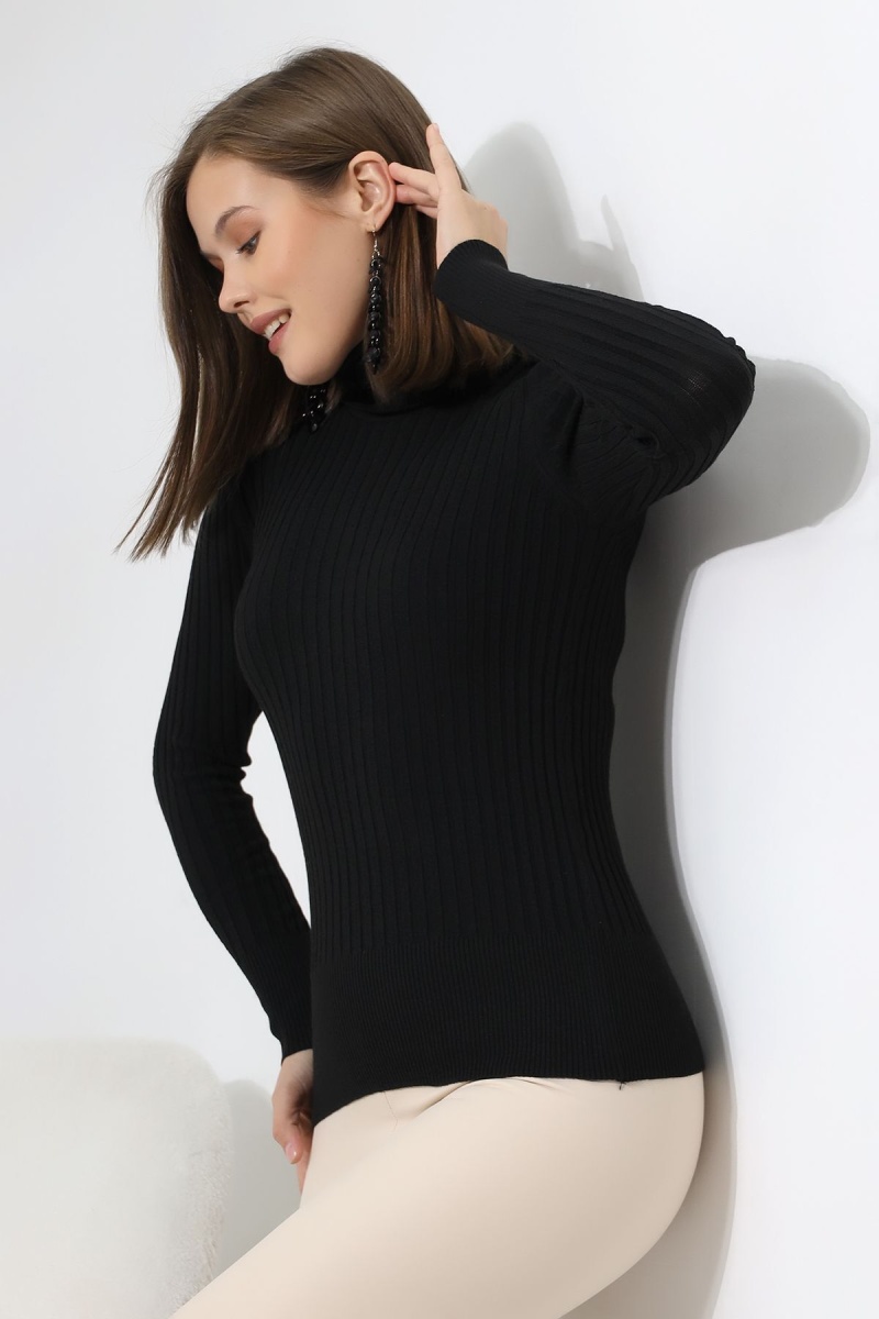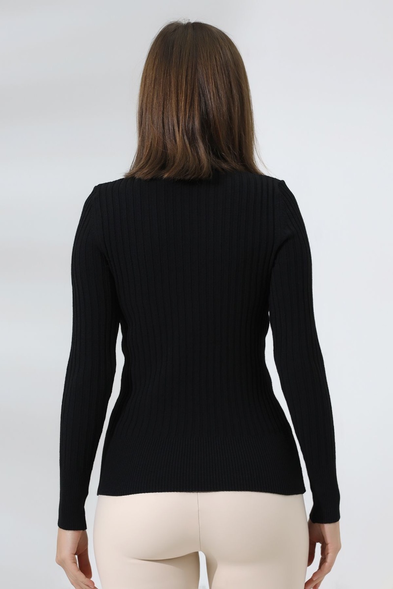 Kadın Siyah Basic Balıkçı Yaka Triko Kazak