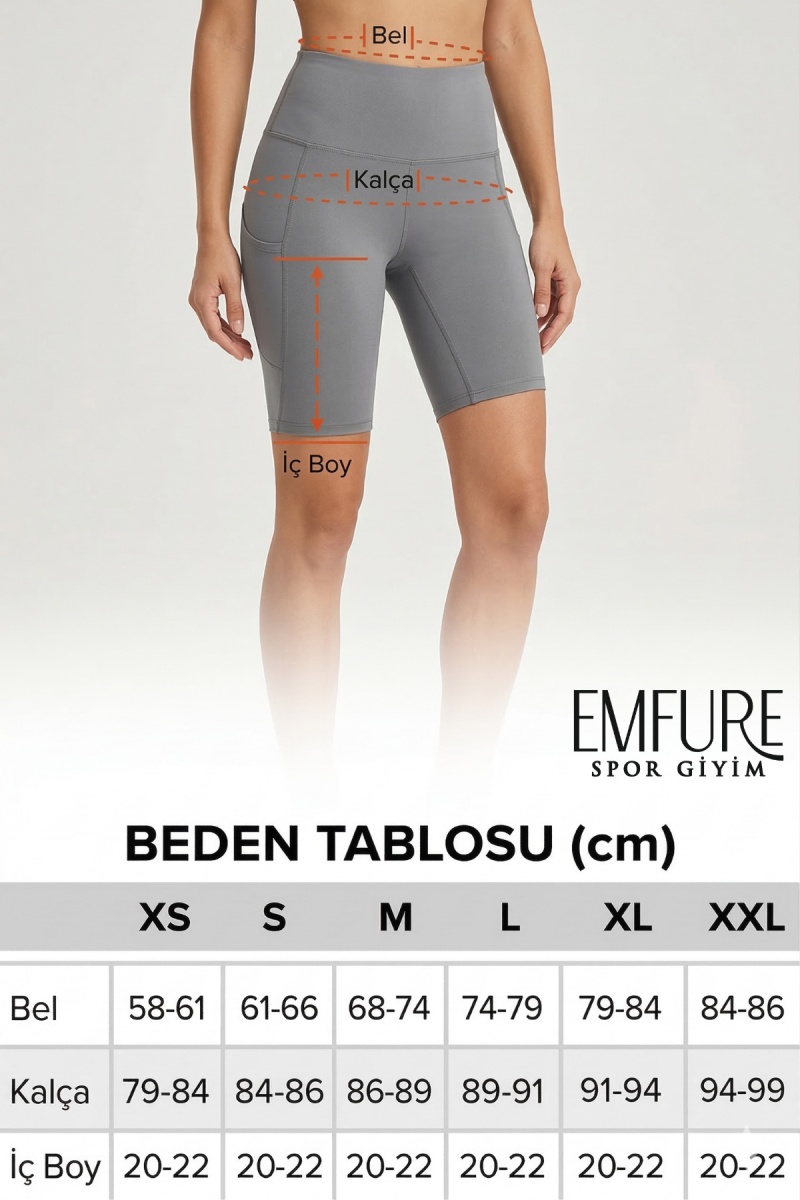 Günlük kombinlerinizden en yoğun antrenmanlarınıza kadar her anınıza eşlik edecek olan Emfure Biker Şort, vücudu saran yapısı ve modern detaylarıyla gardırobunuzun vazgeçilmezi olmaya aday.;
